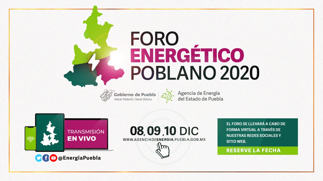 En el marco de su primer año de actividades, la Agencia de Energía del Estado de Puebla celebrará el Foro Energético Poblano 2020, a realizarse del 8 al 10 de diciembre de manera virtual, con transmisiones en la página web y redes sociales.