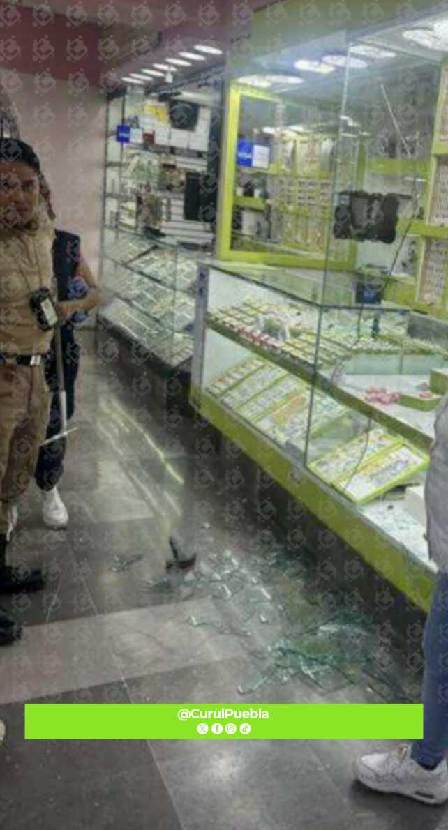 Los delincuentes ingresaron a la plaza ubicada sobre la calle 5 de Mayo entre 12 y 14 Poniente para romper las vitrinas con marros y robaron la joyería.