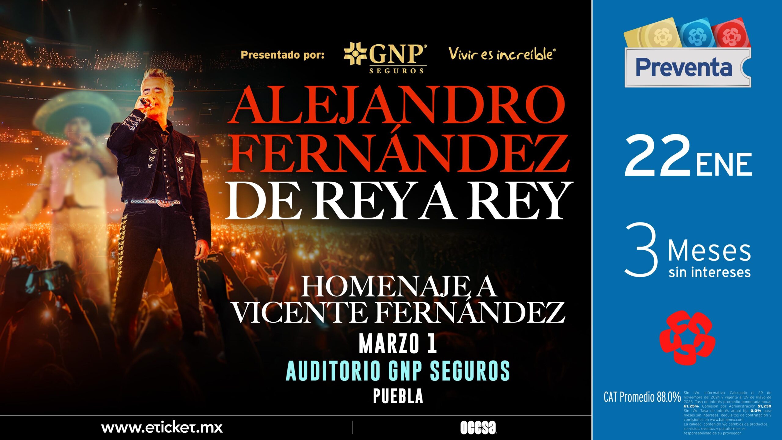 “De Rey a Rey” es un concepto único en el que Alejandro Fernández combina su talento y sensibilidad para interpretar los temas que inmortalizaron a su padre, una de las máximas figuras de la música regional mexicana. Este espectáculo establece un diálogo musical “de rey a rey”, que resalta el legado y la grandeza de ambas figuras de la canción vernácula.