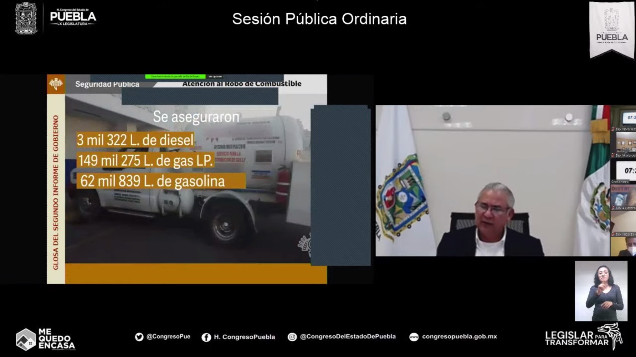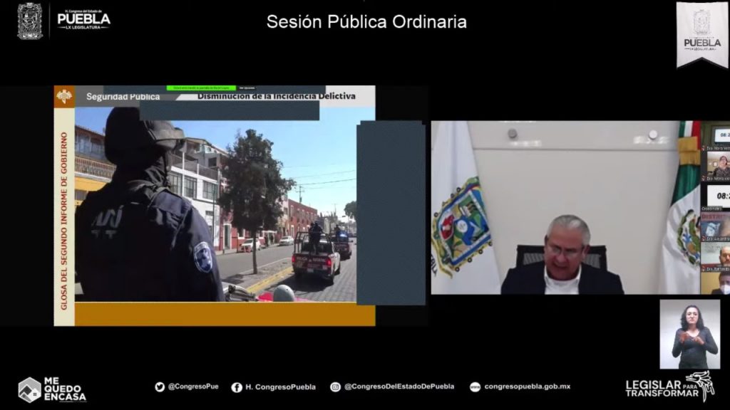 En sesión pública ordinaria virtual y ante el Pleno del Congreso del Estado, como parte de la glosa del segundo informe de labores del Ejecutivo estatal, este día compareció el Secretario de Seguridad Pública, Raciel López Salazar.