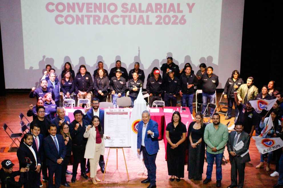 Este jueves, la presidenta municipal de San Pedro Cholula, Tonantzin Fernández, y el secretario general de la CTM Puebla, Leobardo Soto, dieron a conocer el Convenio Salarial y Contractual 2026 para las y los trabajadores del sindicato “Luis Cabrera”, el cual fue firmado por ambas autoridades.