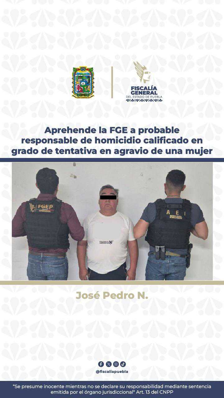 En seguimiento a una investigación por el delito de homicidio calificado en grado de tentativa en agravio de una mujer, la Fiscalía General del Estado logró la aprehensión de José Pedro N., alias “El Peri”, de 55 años de edad, como probable responsable del hecho.