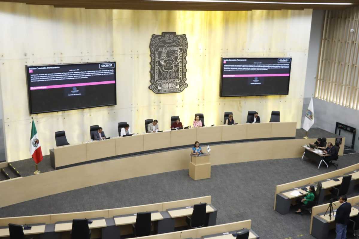 Durante la sesión de la Comisión Permanente se avaló el acuerdo mediante el cual se exhorta a la Secretaría de Educación del Estado para que revise de manera integral las políticas y prácticas de inclusión en las Instituciones de Educación Superior, asegurando que se adopten medidas de accesibilidad, con el fin de eliminar barreras y garantizar un entorno educativo equitativo e incluyente.