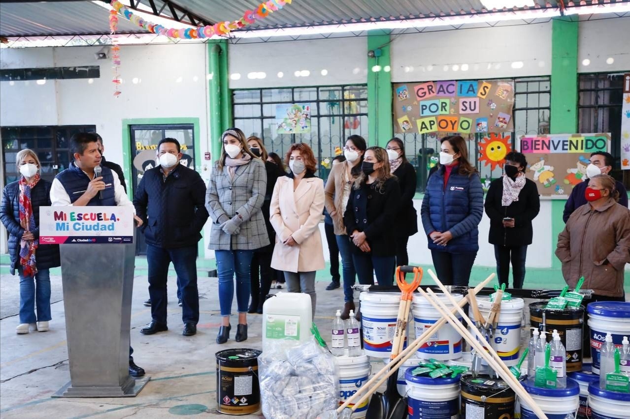 Con un brochazo en el jardín de niños “Jovito Silva”, Eduardo Rivera Pérez, Presidente Municipal de Puebla, dio inicio al programa “Mi Escuela, Mi Ciudad”, el cual mejorará los espacios de una decena de instituciones educativas durante los primeros 120 días.