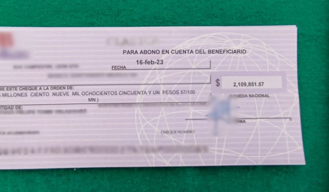 Durante la inspección de los envíos procedentes de New Jersey y Carolina del Norte, Estados Unidos, con destino a distintos domicilios en la delegación Miguel Hidalgo, de la Ciudad de México, localizaron dos títulos de crédito por cobrar (cheques); uno por la cantidad de 2 millones 109 mil 851.57 pesos y otro por 10 mil 647.20 dólares (equivalente a 196 mil 014.95 pesos), sin la declaración en la forma oficial aprobada por el Servicio de Administración Tributaria (SAT).