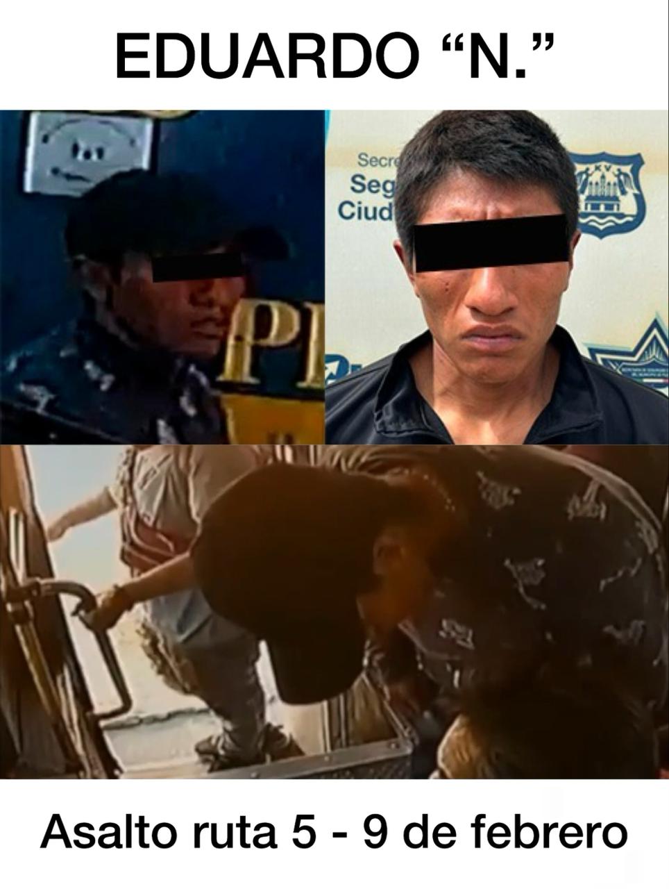 Con base en labores de inteligencia policial se presume que, el ahora detenido participó en el robo cometido contra el chofer de una unidad de la ruta 5, cuyo video ha sido difundido a través de diversos medios de comunicación.
