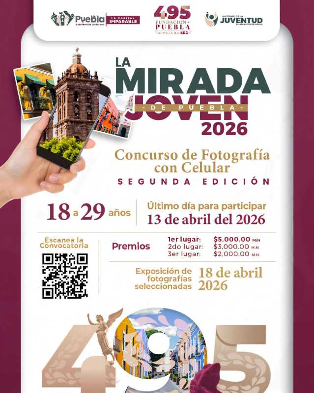 El Gobierno Municipal de Puebla, a través del Instituto de la Juventud del Municipio de Puebla, lanzó la convocatoria para la segunda edición del concurso de fotografía con celular MIRADA 2026, titulado “La mirada joven de Puebla”, con el objetivo de impulsar la creatividad y participación cultural de las juventudes en la capital.