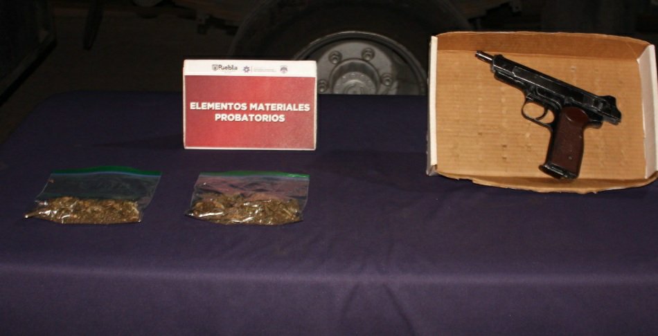 Derivado de lo anterior, elementos de Seguridad Ciudadana de la Región Norte, Zona Uno, detectaron el automóvil y tres masculinos a bordo sobre la calle 5 de Mayo, a la altura de la colonia San José Los Cerritos. Durante el proceso de entrevista, las Fuerzas Municipales hallaron un arma tipo pistola así como, hierba verde con características a la marihuana, motivo por el cual se procedió a la detención de los varones por su probable participación en hechos con apariencia de delitos contra la salud y portación de instrumento prohibido.