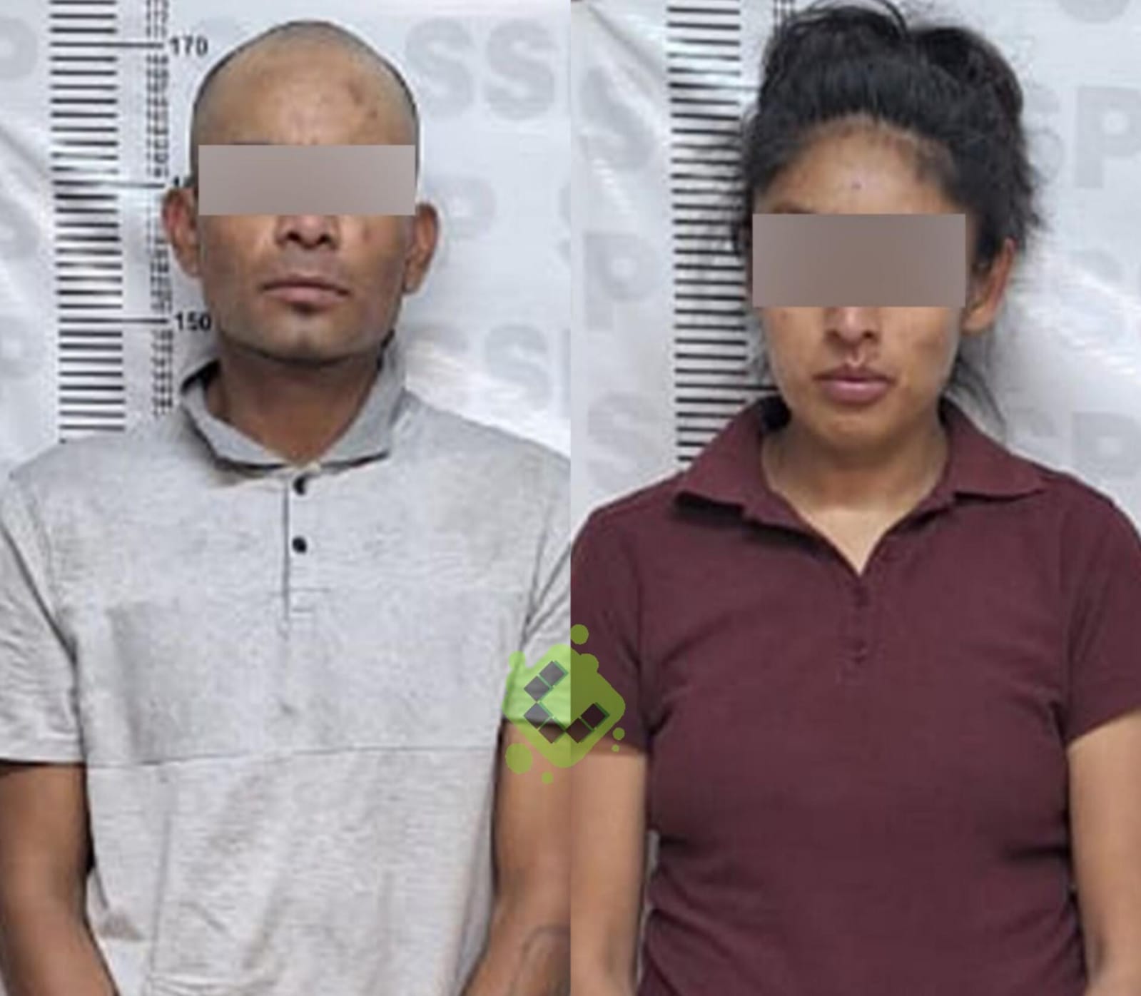 La intervención de la Policía Estatal se registró en la junta auxiliar de San Juan Tuxco, donde fueron detenidos Rafael N., de 33 años y Paola N., de 30 años.