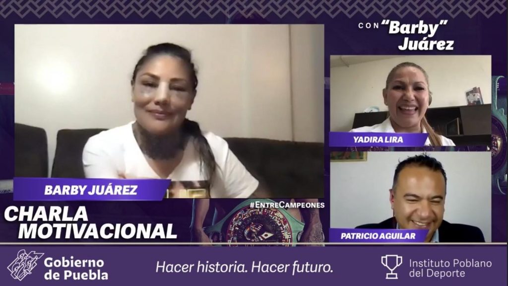 Al destacar que los campeones no son los que caen, si no los que se levantan para triunfar, Mariana “Barby» Juárez, una de las pioneras en el pugilismo femenil mexicano, participó con una charla motivacional en el programa “Entre Campeones” del Instituto Poblano del Deporte (INPODE).