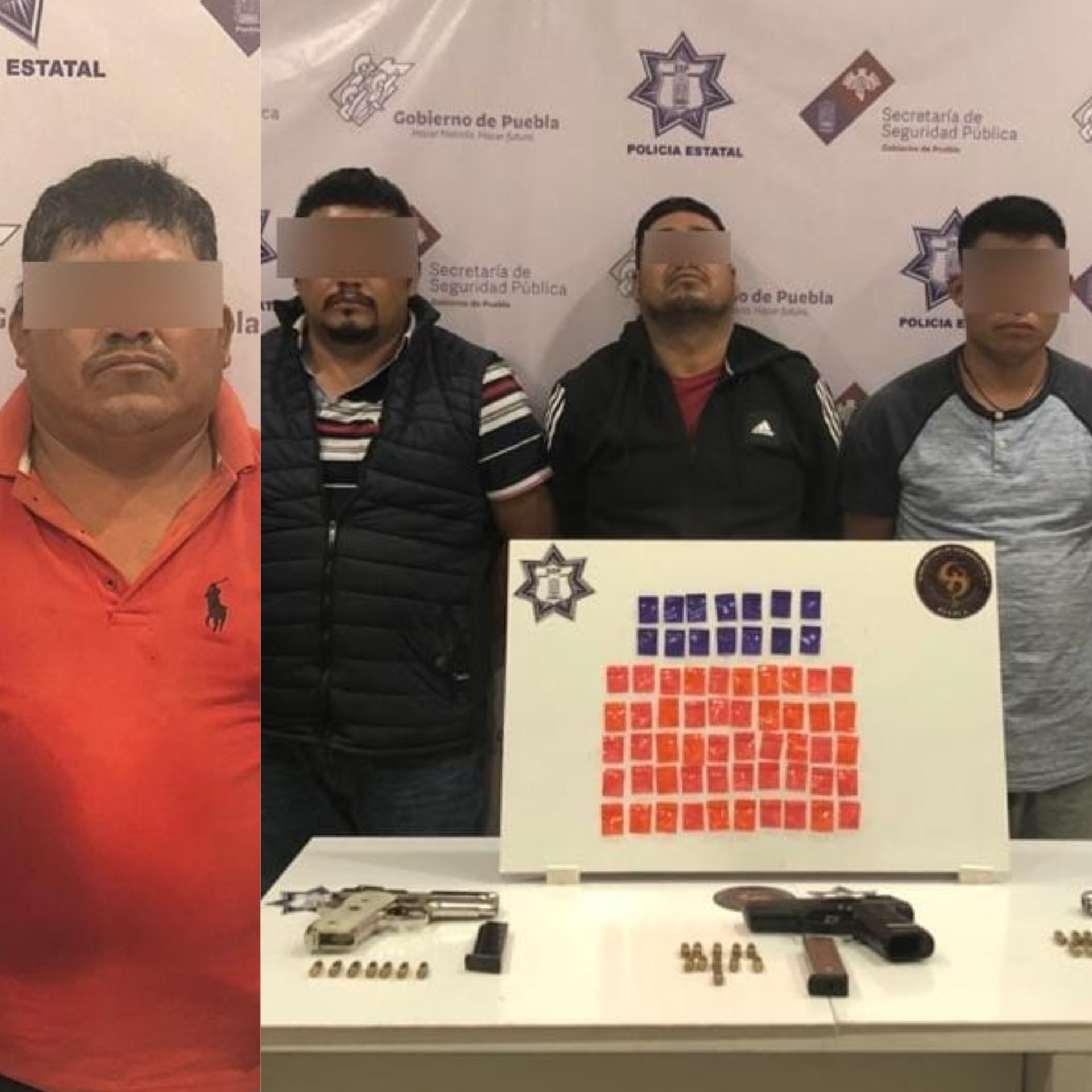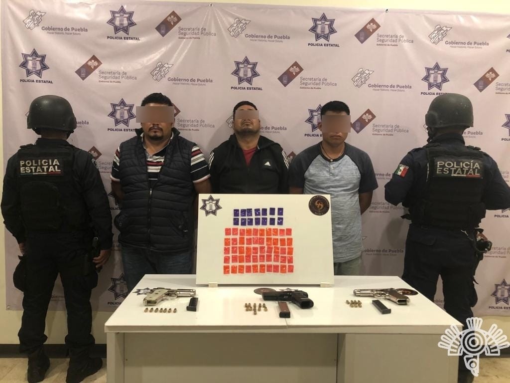 Agentes de la Policía Estatal detuvieron a cuatro presuntos delincuentes dedicados, principalmente, al asalto a transportistas y distribución de drogas, a quienes se les aseguraron armas y sustancias con apariencia de droga, por lo que serán puestos a disposición del Ministerio Público.