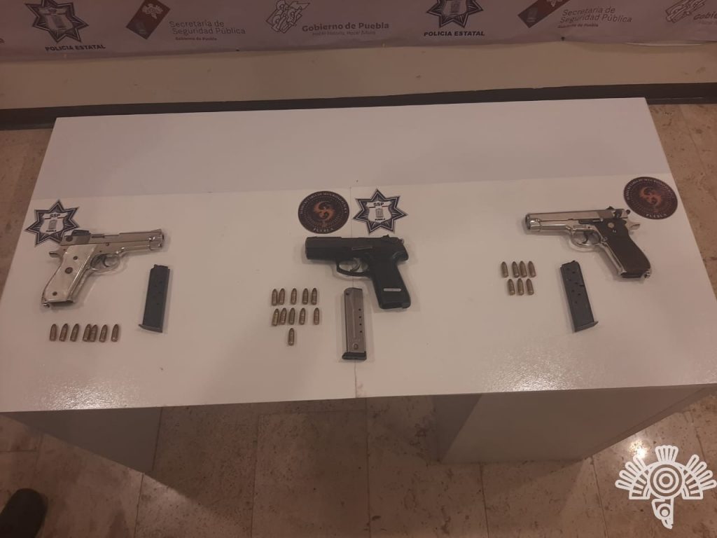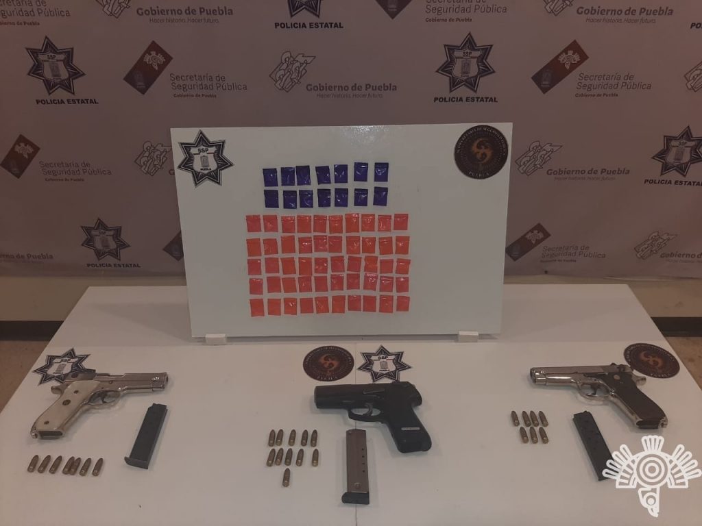 A estos se les aseguraron tres armas de fuego, dos de la marca Smith&Wesson (una modelo 439 y otra calibre .9 milímetros) y otra marca Rugger (calibre .9 milímetros), así como 43 pequeñas bolsas con una sustancia que en apariencia se trata de la droga conocida como “cristal”, además de un vehículo Jetta con reporte de robo.
