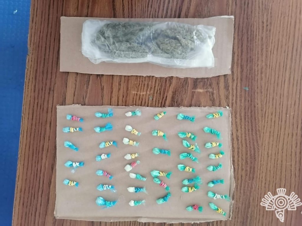 El hombre de 23 años fue asegurado en posesión de 42 envoltorios plásticos con una sustancia granulada con las características de la droga conocida como cristal, y un envoltorio plástico con hierba seca, presumiblemente marihuana.