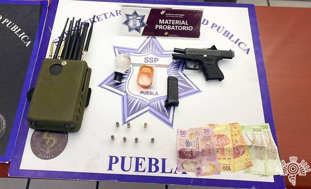 Al momento del aseguramiento, los hoy detenidos estaban en posesión de un arma Glock calibre .9, siete cartuchos útiles, un cargador de pistola y un inhibidor de señal con 16 antenas.