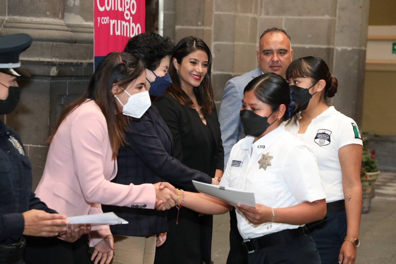 Acompañaron la entrega de estas 28 certificaciones Christian Guzmán Jiménez, Regidora Presidenta de la Comisión de Igualdad Sustantiva de Género y Derechos Humanos; y María José Ramos Téllez, Integrante de la Policía Municipal acreditada en los estándares de competencia antes mencionados.