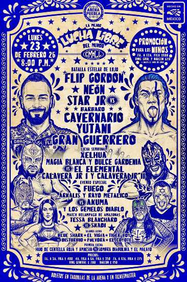 La tradicional función de lunes por la noche en la Arena Puebla presentará el próximo 23 de febrero, el regreso del norteamericano, Flip Gordon, quien acompañado de Neón y Star Jr. enfrentarán a Bárbaro Cavernario, Yutani y Gran Guerrero. En la batalla estelar.