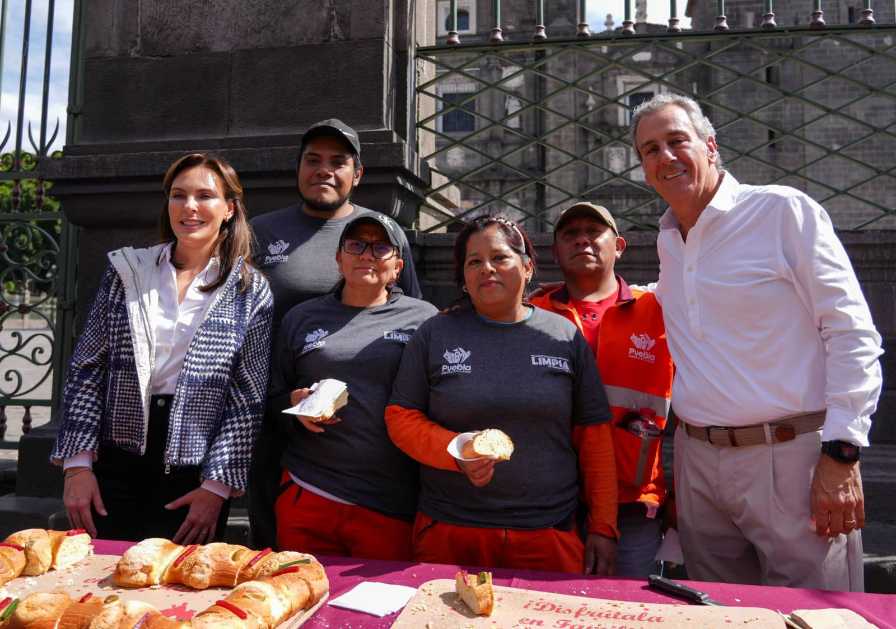 Como parte de la conclusión de las celebraciones navideñas y de fin de año, y con la intención de compartir momentos de felicidad con las y los poblanos, el presidente municipal, Pepe Chedraui, y la presidenta del SMDIF, MariElise Budib, partieron rosca de Reyes en el Zócalo capitalino.