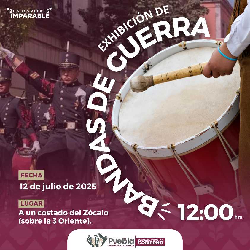 Con el objetivo de promover una cultura de la paz y establecer acciones de participación ciudadana, rescate de valores e identidad local en el municipio de Puebla, la Secretaría General de Gobierno, que encabeza Franco Rodríguez, organizará una exhibición de bandas de guerra en el Centro Histórico.