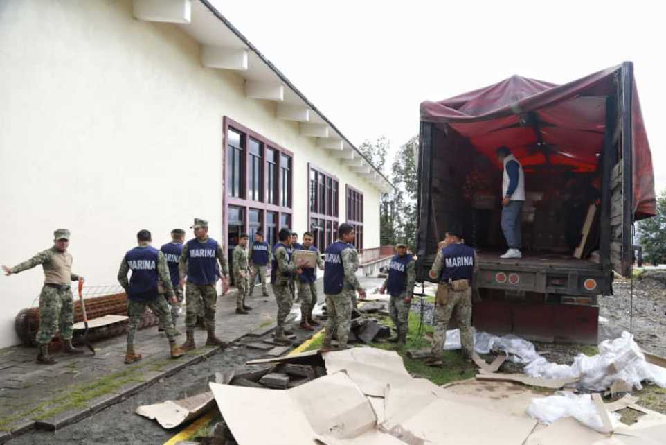 Asimismo, este sábado arribaron 100 elementos de la Secretaría de Marina, quienes apoyarán las labores de auxilio. También se contará con el apoyo aéreo de tres helicópteros, dos pertenecientes a la Secretaría de la Defensa Nacional y uno a la Secretaría de Marina, que serán utilizados una vez que las condiciones meteorológicas lo permitan.