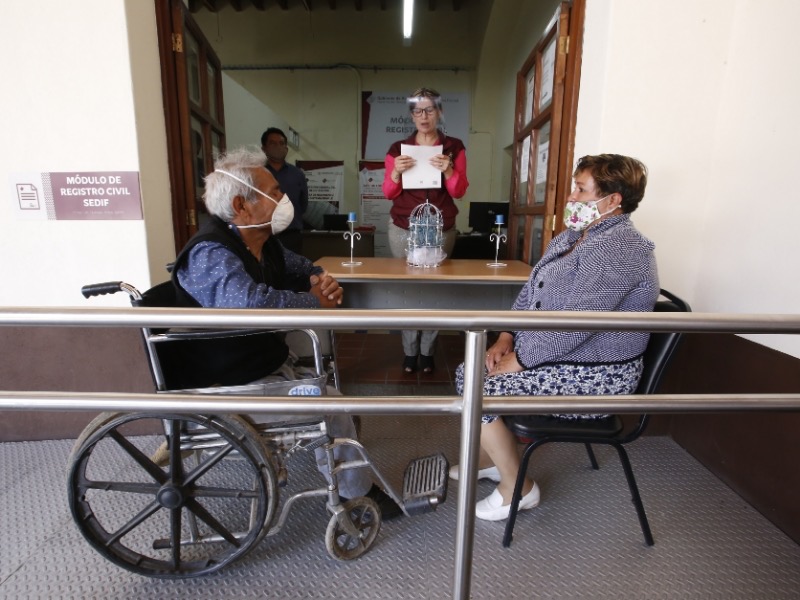 Jesús Cuaxiloa y María Luisa Mora acudieron al Módulo 1 del Registro Civil del Sistema para el Desarrollo Integral de la Familia del Estado de Puebla (SEDIF) para formalizar su matrimonio después de vivir juntos 20 años.