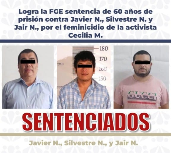 La Fiscalía General del Estado (FGE) obtuvo una sentencia de 60 años de prisión contra Javier N., Silvestre N. y Jair N. por su responsabilidad en el feminicidio de la activista y abogada Cecilia Monzón, crimen registrado en mayo de 2022.