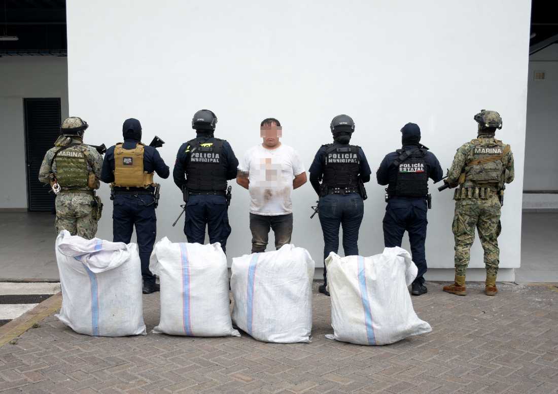 El presunto responsable, de 34 años de edad, viajaba en una camioneta, en la que trasladaba cuatro costales que contenían hierba verde con características similares a la droga conocida como marihuana, con un peso aproximadamente de 65 kilos.