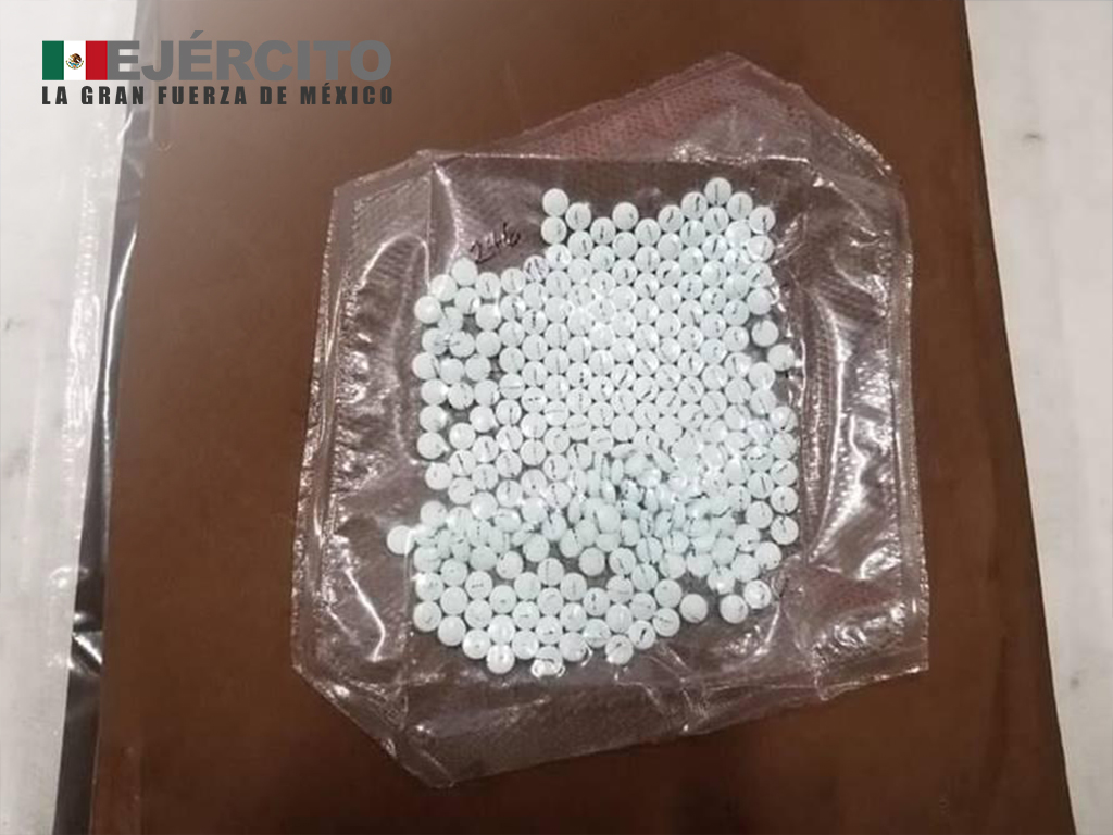 El 6 de febrero del 2021, en el Puesto Militar de Seguridad Estratégico de Querobabi, Son., efectivos castrenses, al efectuar una revisión a un autobús de pasajeros, procedente de la Cd. Méx., con destino a Tijuana, B.C., localizaron a 6 personas del sexo femenino que transportaban 28 envoltorios de plástico adheridos a sus cuerpos, logrando asegurarles 25,000 pastillas de posible fentanilo, con un peso aproximado de 3 kilogramos.