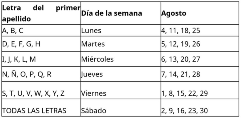 Explicó que el registro se realiza de acuerdo con la letra inicial del primer apellido, bajo el siguiente calendario: