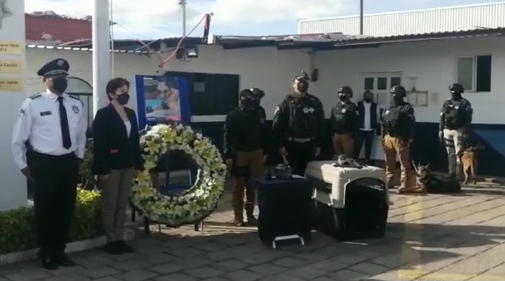 Las balas de salva resonaron en la base Titanio de la Secretaría de Seguridad Ciudadana, donde la corporación se reunió para despedir a Hanna, elemento canino fallecido esta semana.