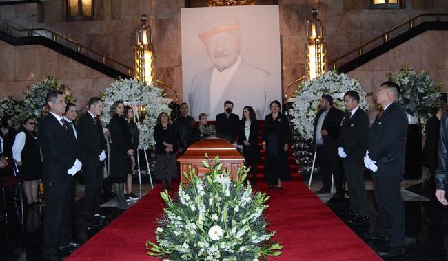 Durante la ceremonia, que se llevó a cabo al interior del Palacio de Bellas Artes, la secretaria de Cultura federal, Alejandra Frausto Guerrero, dio el pésame a la familia, a la que agradeció el que se realizara este homenaje.