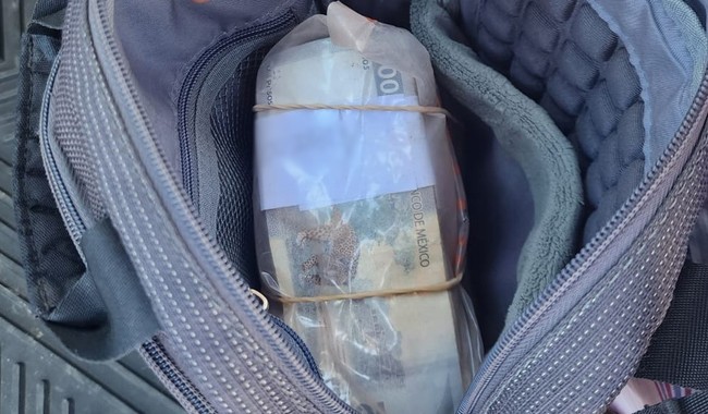 Antes de inspeccionar la mochila, el automovilista admitió portar dinero en efectivo, sin embargo, manifestó que no contaba con la documentación para acreditar la procedencia legal del numerario, por lo que fue detenido.
