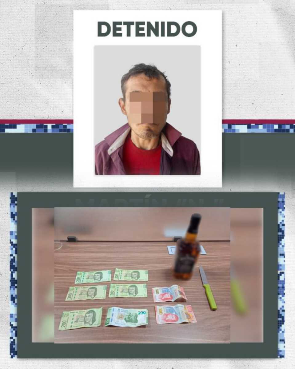 A través de un despliegue territorial, implementado en calles de la colonia Álamos, Policías de la Ciudad, detuvieron a Martín “N.”, de 36 años de edad, quien ingresó a una tienda de conveniencia, para robar dinero en efectivo y mercancía del establecimiento. Además, se aseguró un objeto punzocortante, presuntamente usado para cometer el ilícito.