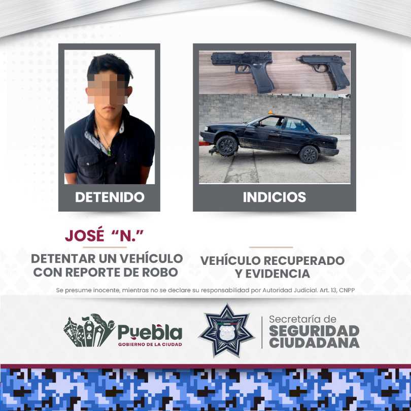 Elementos de la Policía de la Ciudad, aseguraron a un hombre, quien fue sorprendido conduciendo un vehículo presuntamente con reporte de robo y dos réplicas de arma de fuego.