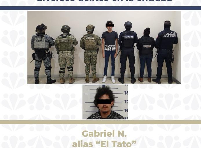 Durante rueda de prensa, la Fiscal General del Estado de Puebla, Idamis Pastor Betancourt, informó que como resultado de acciones de investigación y coordinación interinstitucional entre la Secretaría de Seguridad Pública Estatal (SSP), la Secretaría de Marina (SEMAR), la Secretaría de la Defensa Nacional (SEDENA), la Guardia Nacional (GN), la Secretaría de Seguridad Ciudadana (SSC) del municipio de Puebla y la Fiscalía General del Estado (FGE), se logró la detención de Gabriel N., alias “El Tato”, de 27 años de edad, presunto distribuidor de droga en la ciudad de Puebla.