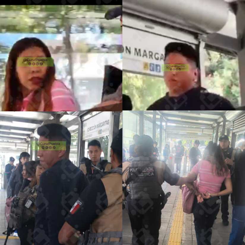 La detención se registró la tarde de este martes en la estación Paseo Bravo, ubicada en el primer cuadro de la ciudad de Puebla, luego de que usuarios identificaran y entregaran a los sospechosos a las autoridades.