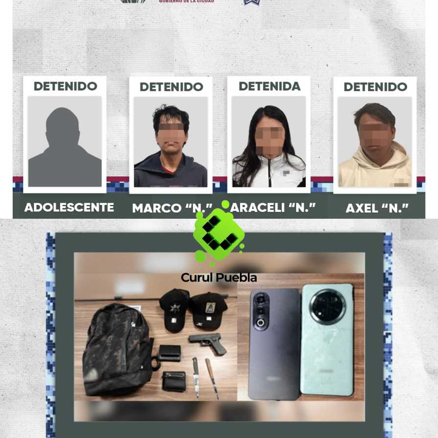 A través del despliegue territorial y como resultado del trabajo interinstitucional del operativo “Unidos Por Ti”, implementado en la zona norte, elementos de la Policía de la Ciudad detuvieron a Marco Antonio “N”, de 46 años de edad; Araceli “N”, de 32 años de edad, quien cuenta con registros por los delitos de robo de vehículo, privación ilegal de la libertad y robo agravado; Axel Alejandro “N”, de 24 años de edad, con registros por los delitos de robo calificado y de autopartes; y a un adolescente.