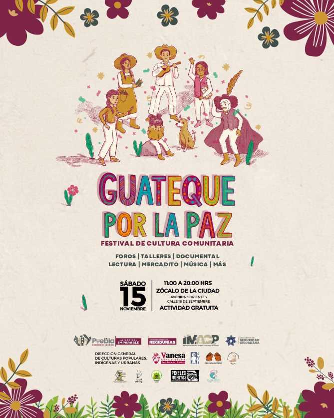 Este sábado 15 de noviembre, el corazón de la ciudad se convertirá en un espacio de encuentro, arte y esperanza con la realización del “Guateque por la Paz”, un festival organizado por el Ayuntamiento de Puebla que busca fortalecer los lazos comunitarios a través de la cultura.