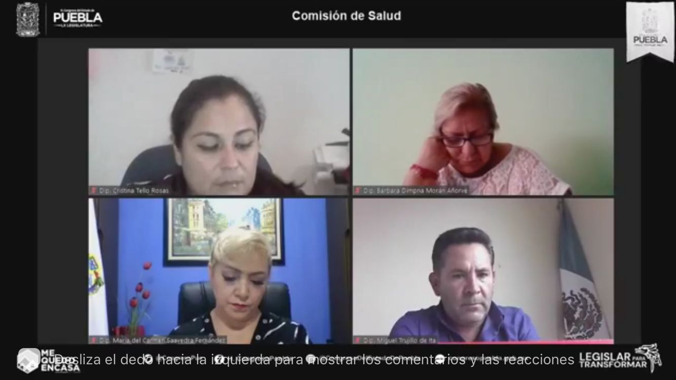 En el marco del desarrollo de la Sesión de la Comisión de Salud, se conectaron a través de la plataforma virtual, la diputada Cristina Tello Rosas, Bárbara Morán Añorve, María del Carmen Saavedra, Estefanía Rodríguez Sandoval y el diputado Miguel Trujillo de Ita.