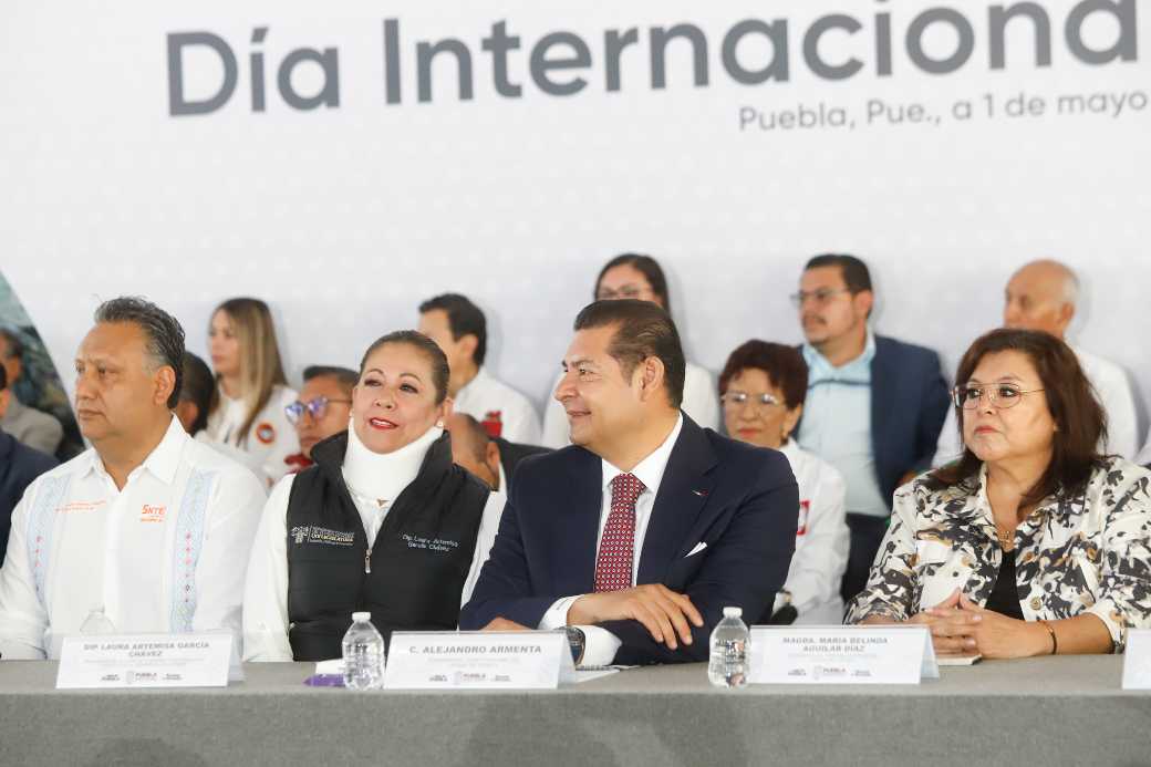 El Gobernador de Puebla, Alejandro Armenta, junto con autoridades estatales y líderes sindicales, encabezó la Ceremonia Conmemorativa del Día Internacional del Trabajo, guiados por los principios del Humanismo Mexicano de la presidenta de México, Claudia Sheinbaum, seguridad, justicia y riqueza Comunitaria, que son la base del gobierno.