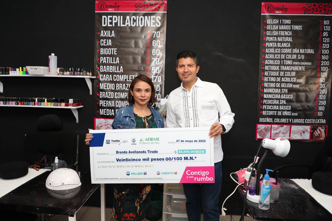 100 emprendedores y emprendedoras locales recibieron del Ayuntamiento de Puebla apoyo crediticio para sus negocios; para Brenda Avellaneda Tirado este financiamiento por 25 mil pesos significará el poder equipar su Salón de Uñas «Beauty».