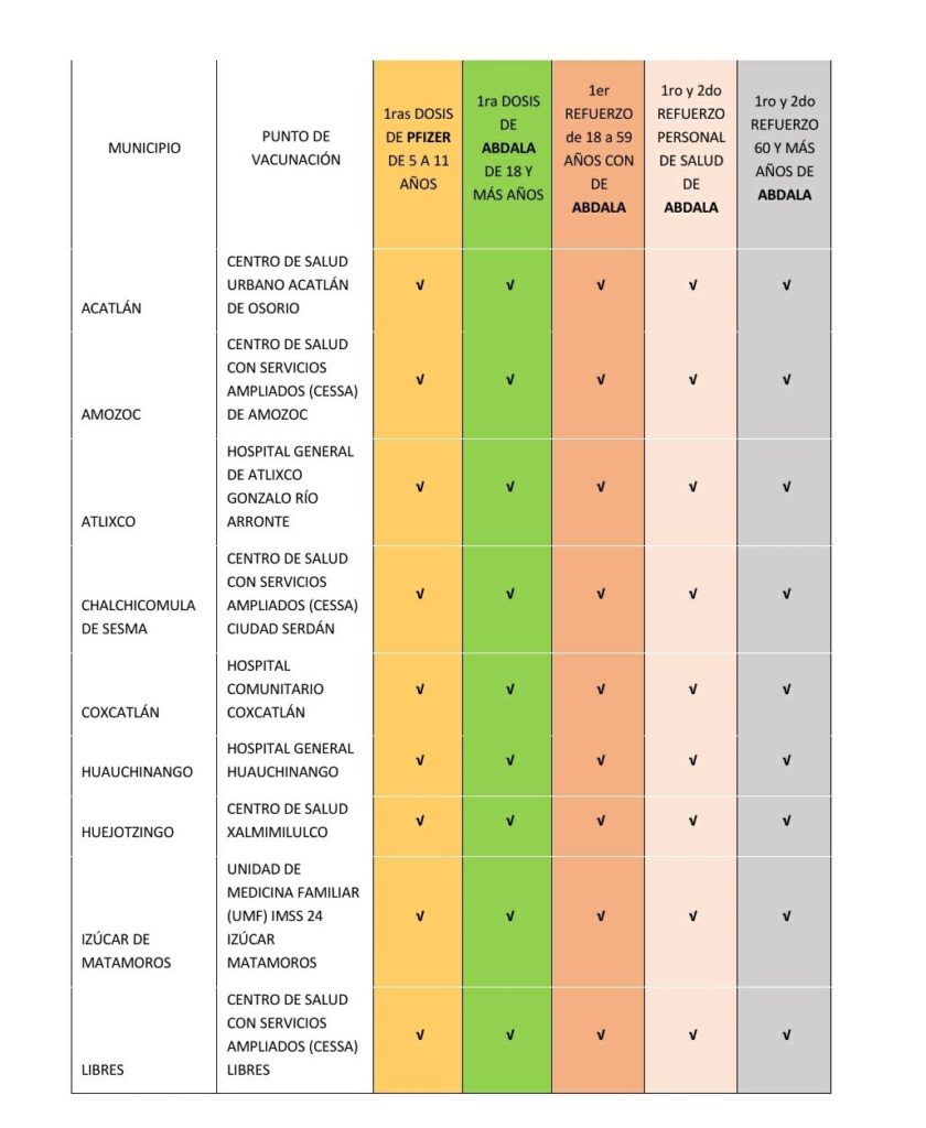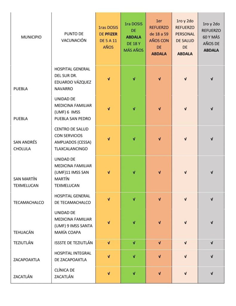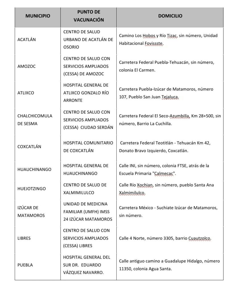 Las instituciones que integran la Brigada Correcaminos (SEDENA, Bienestar, ISSSTE, IMSS, ISSSTEP y Servicios de Salud) señalan que madres y padres de familia deben tomar en cuenta que los menores que hayan sido vacunados con algún otro esquema de tratamiento viral 14 días previos o tengan un cuadro activo y/o que continúen con síntomas de SARS-CoV-2, presenten temperatura corporal mayor a 38° C y/o tengan trastornos de tipo hemorrágico, no podrán recibir la vacuna por seguridad.