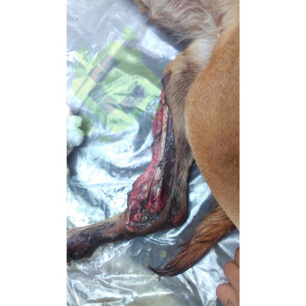😡 Un «cuete» estalla en la extremidad trasera de una perrita en la colonia Bosques de San Sebastián y es abandonada en un parque, el cuadrúpedo tuvo que ser internado para una cirugía por la gravedad de las lesiones.