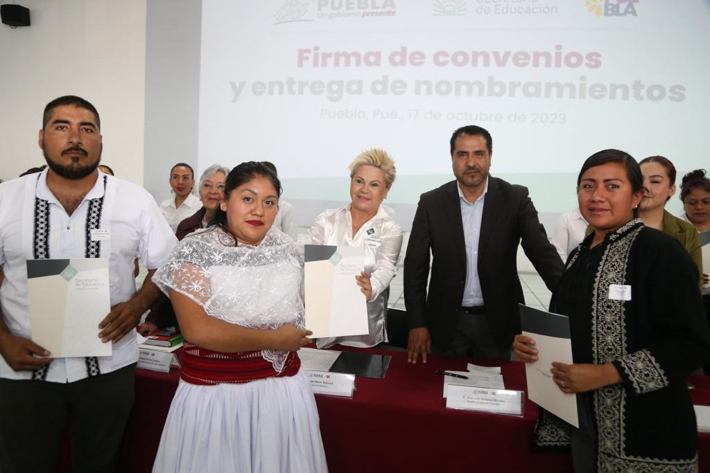 Durante el mismo evento, la titular de la dependencia también entregó 194 nombramientos a trabajadores bilingües de educación preescolar y primaria indígena, hablantes de las siete lenguas originarias (náhuatl, tutunakú, tepehua, otomí, popoloca, mixteco y mazateco); los profesores obtuvieron estas designaciones después de trabajar como promotores educativos por más de una década.