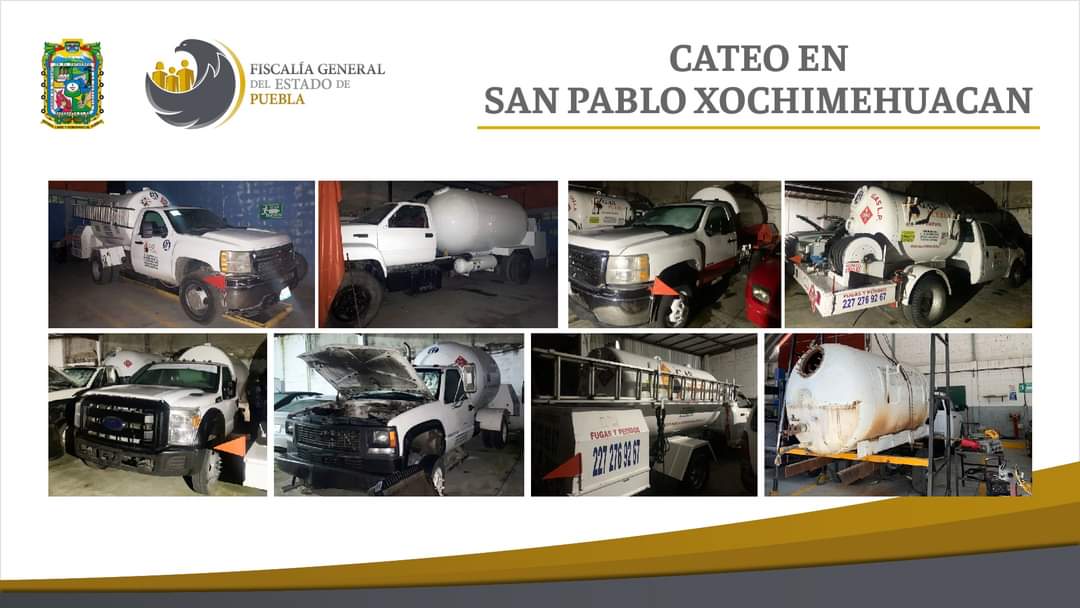 En un inmueble con fachada de taller mecánico en la Junta Auxiliar de San Pablo Xochimehuacan, la Fiscalía General del Estado de Puebla, detectó y aseguró ocho pipas de gas.