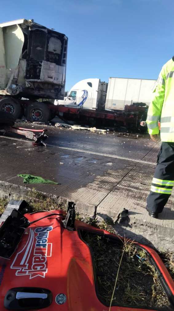 Esta mañana se registró un fuerte choque múltiple que involucra a dos tractocamiones y a un vehículo particular sobre la autopista México-Puebla a la altura de Acatzingo.