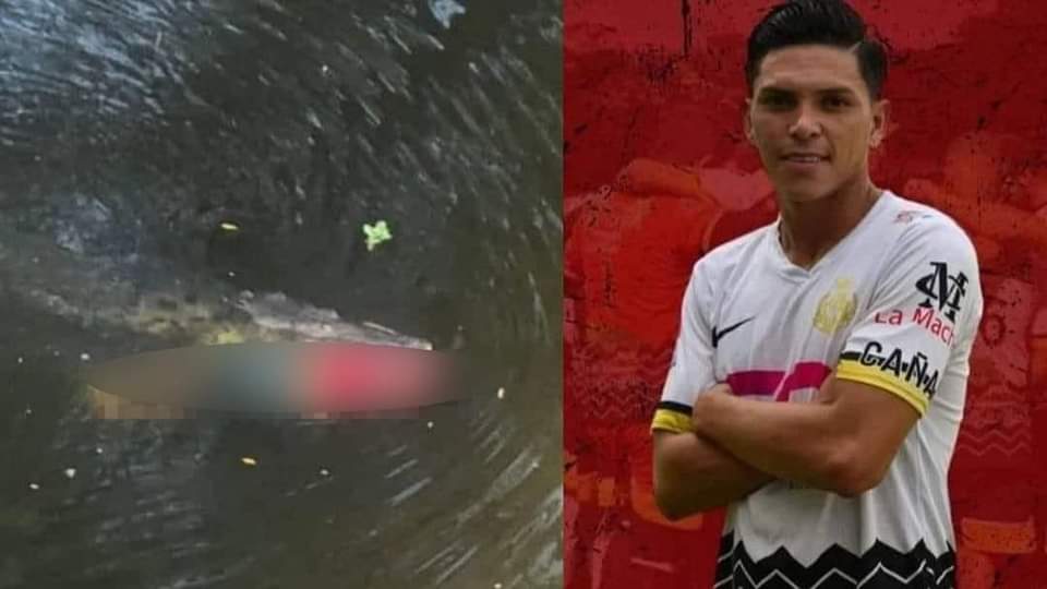 En un video que circuló en redes sociales, se ve cómo el reptil lleva en el hocico el cuerpo del futbolista.