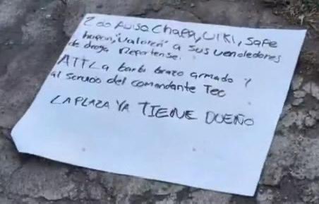De acuerdo con los reportes policiales, en la cartulina en la que se leia un texto con amenazas y firmado por: «La Barbi brazo armado y al servicio del comandante Teo».
