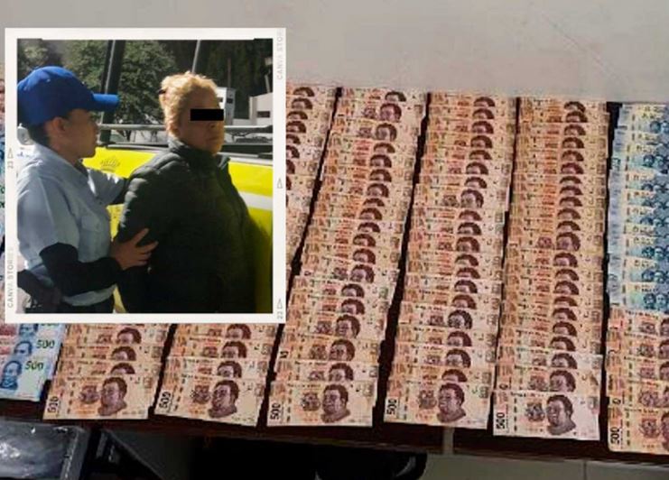 Al momento de la detención, le encontraron a la mujer una bolsa de plástico en color negro y la cantidad de 409 mil 670 pesos en billetes de varias denominaciones.