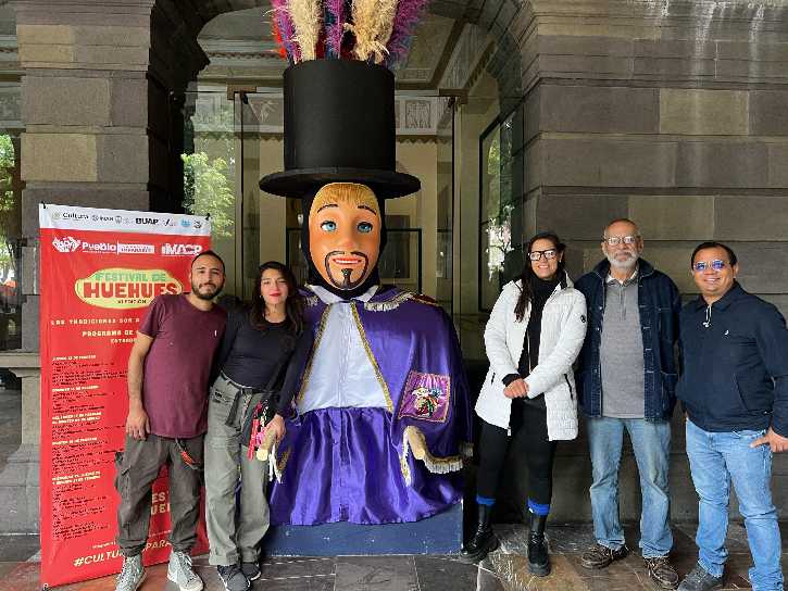 En el marco del XI Festival de Huehues 2025 el Gobierno de la Ciudad que encabeza, Pepe Chedraui, a través del Instituto Municipal de Arte y Cultura de Puebla (IMACP) con la dirección de Anel Nochebuena Escobar, instaló un Huehue de gran escala afuera del Teatro de la Ciudad con el fin de fomentar nuestras tradiciones y mostrar el trabajo de artesanos locales.