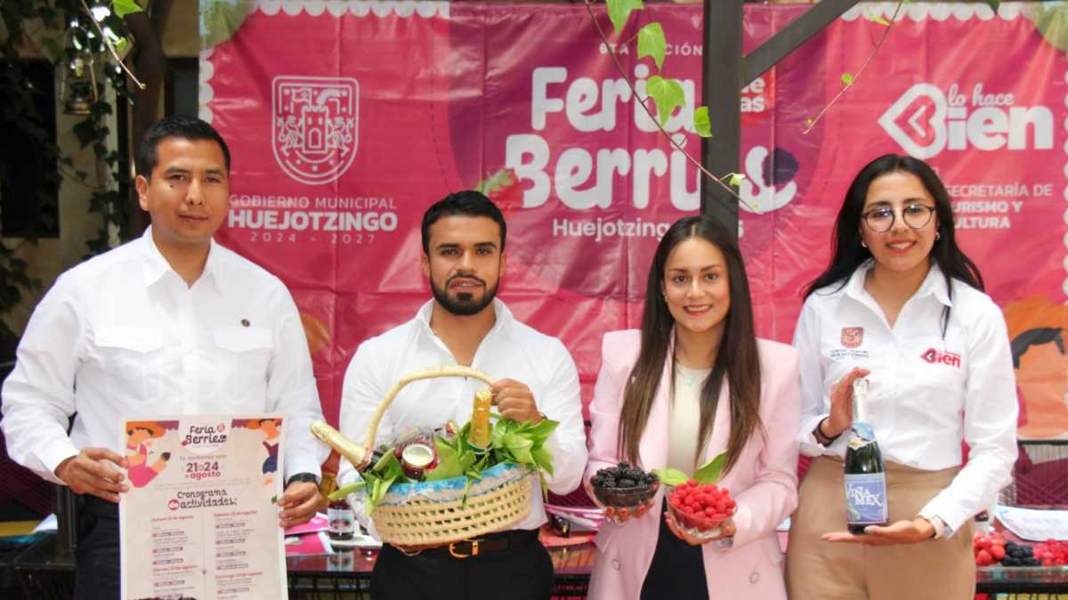 En rueda de prensa, la encargada de despacho de la Secretaría de Turismo y Cultura del Gobierno Municipal de Huejotzingo, Andrea Morales García, acompañada por la Regidora de Hacienda, Desarrollo Económico y Turismo, Laura Rangel Carmona, y el Regidor de Arte y Cultura, José Ángel Castellanos Caballero, presentó la 6ta. edición de la Feria de las Berries, que se celebrará del 21 al 24 de agosto en la Colonia de San Diego Buenavista. Este evento busca promover la producción local de berries y consolidar a Huejotzingo como un destino turístico y cultural.